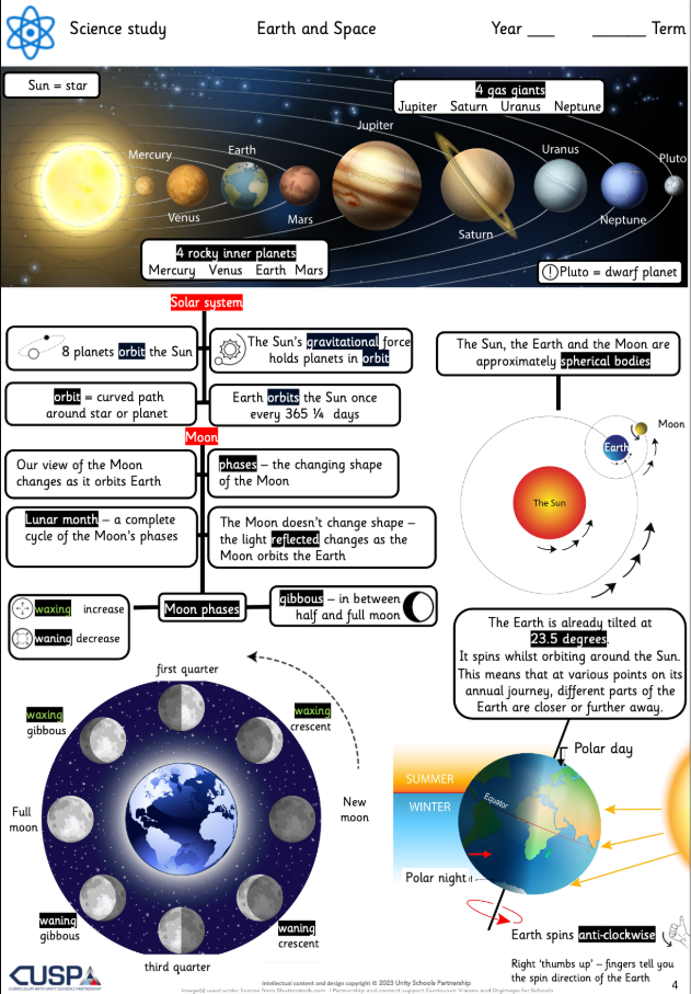 Earth and Space develops understanding of our place in the universe, addressing misconceptions about the Moon, the Sun and the seasons.