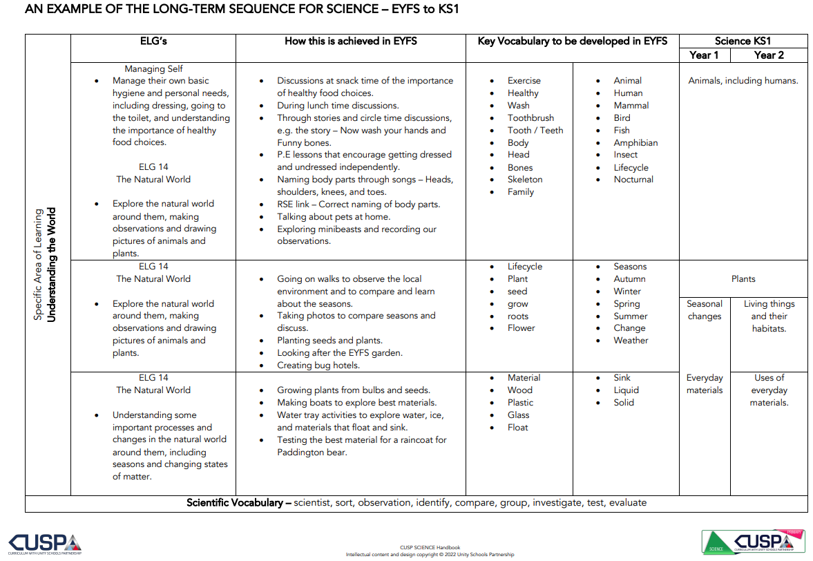 Our intent is to provide every child with a broad, ambitious and carefully sequenced Science curriculum, delivered through CUSP, which enables them to confidently explore, question and understand the world around them. We want children to build secure scientific knowledge over time and develop the confidence to think, speak and reason like scientists.