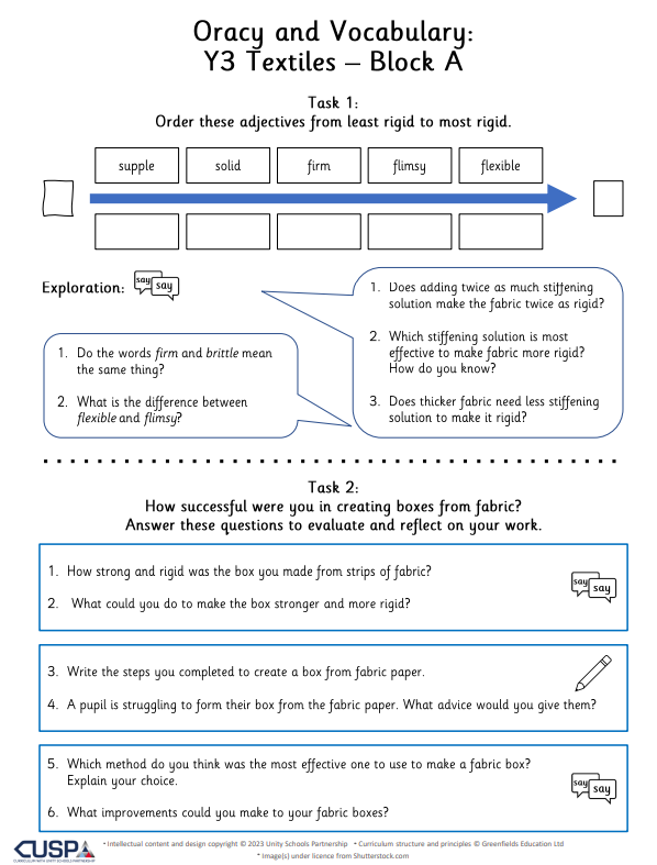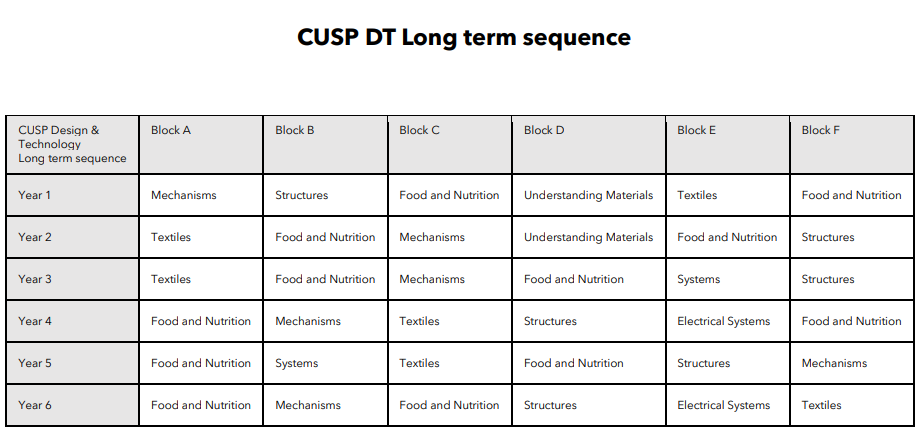 In CUSP Design and Technology, knowledge is organised into carefully sequenced blocks covering: